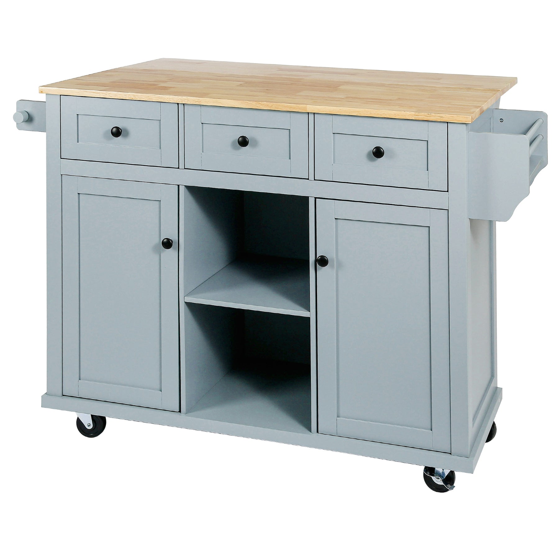 Product Name:Kitchen Cart with Rubber wood Drop-Leaf Countertop ,Cabinet door internal storage racks,Kitchen Island on 5 Wheels with Storage Cabinet and 3 Drawers for Dinning Room, Grey Blue